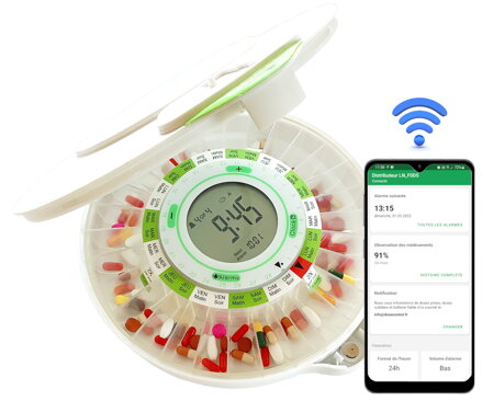 - Time-controlled and safe dispensing of medication - time-adjustable dispensing of 1 up to 9 doses per day; the ONLY prescribed dose for the given day and time (hour and minute) will be dispensed